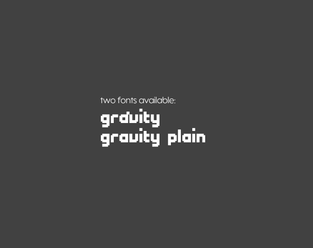 Thank you for downloading the Gravity font! Gravity has a unique design style that will very much suit your games.